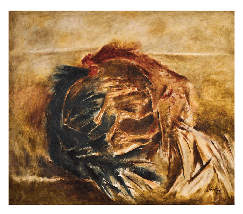Description: This painting vividly captures the intensity and tradition of cockfighting in the villages of South Canara. With dynamic strokes and bold colors, it brings to life the energy, excitement, and cultural significance of this age-old spectacle. The artwork immerses the viewer in the raw spirit of the competition, reflecting the deep-rooted traditions of the region.