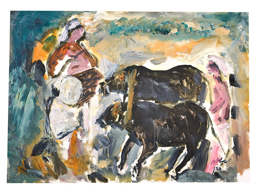 Description: This painting vividly captures the intense moments before the buffalo race, as skilled handlers prepare their powerful animals for the thrilling competition. With careful attention, they adorn the buffaloes with vibrant decorations, their strong muscles poised for action. The artwork conveys a sense of anticipation and excitement, immersing the viewer in the energetic spirit of this age-old tradition.